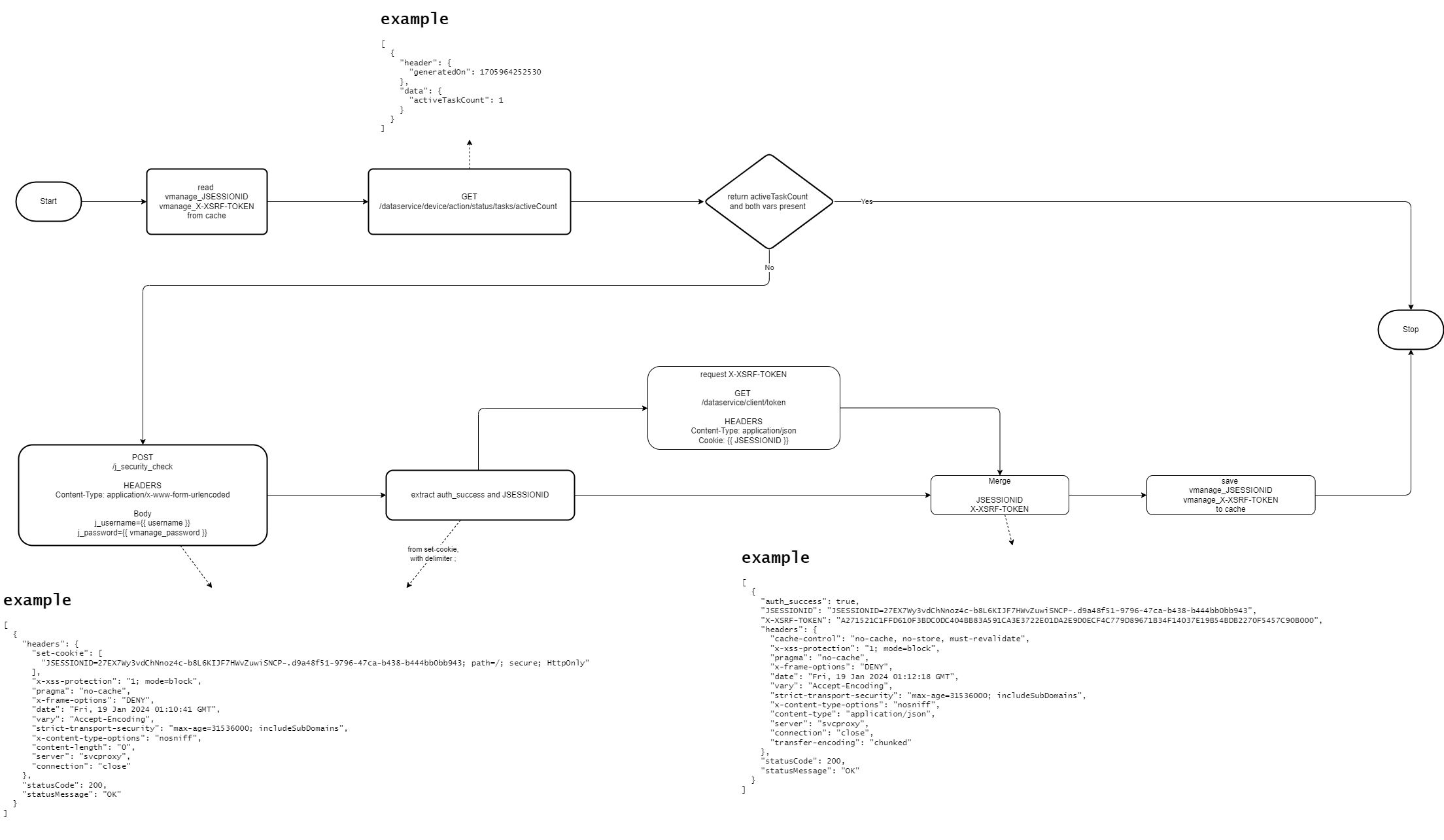 All interactions with vmanage require a valid token which is dynamically generated during the user login process. This workflow is to retrieve the token for further operations against a vmanage by mimic the user login.